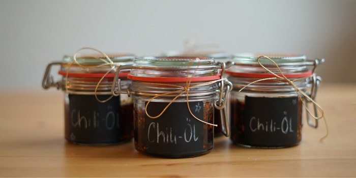 Die Festtage rücken immer näher. Und ich möchte nichts verschenken, das meine Liebsten schon haben oder nicht gebrauchen können. Darum habe ich dieses Jahr Chili-Öl als kleines Weihnachtsgeschenk gemacht.