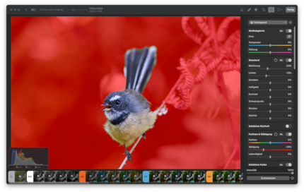 In einfacheren Fällen ist die Erkennung durchaus brauchbar. In diesem Bild hat Photomator den Hintergrund perfekt erkannt und ausgewählt. Ich konnte daher dessen Sättigung und Helligkeit zurückdrehen, um das Motiv besser zur Geltung zu bringen.