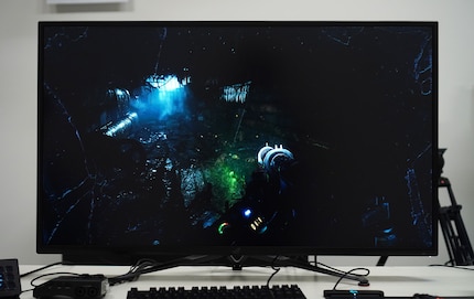 Theorie ist das eine. Ich will wissen, wie sich der Monitor beim Zocken schlägt. Als erstes fällt verständlicherweise die enorme Grösse auf. Zwar benutzen wir im Studio für unsere Let’s Plays ebenfalls ein 43-Zoll-Gerät, allerdings wegen des Streamings nur mit einer Auflösung von 1080p. Jetzt, wo ich alleine und direkt davor sitze, kommt mit der Monitor riesig vor. Und nach ein paar Runden mit «Apex Legends» und «CS:GO» wird mir sogar etwas schummrig. Vielleicht würde ich mich mit der Zeit daran gewöhnen. Aktuell scheint mir das Teil aber tatsächlich ein paar Zoll zu gross für aufs Pult.