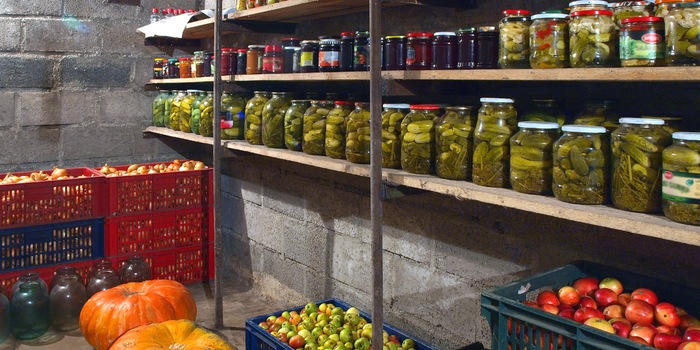 Damit deine Konservendosen und Gläser nicht auf den Boden fallen und Schaden nehmen, lagerst du sie im Optimalfall auf dem Boden stehend oder so im Regal, dass sie nicht umherrollen können. Auch entsprechende Vorrichtungen vorne an den Regalen schützen deine Dosen vor dem Herunterfallen. Die Konserven solltest du nur an trockenen Orten aufbewahren. Ansonsten kann sich an den metallenen Dosen oder deren Deckeln Rost bilden. Dadurch wird die Aussenhülle angegriffen, Luft kann in die Konserve gelangen und im Innern können sich Schimmel oder Keime bilden.