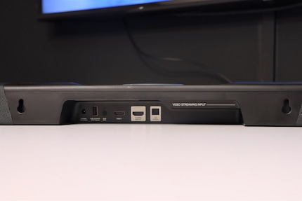 Auf einen 3,5-mm-Anschluss musst du bei der Command Bar verzichten. Dafür rüstet Polk seine größere Soundbar neben Toslink mit insgesamt drei HDMI-Anschlüssen aus. Während die ARC-Variante für die Verbindung zum Fernseher zuständig ist, sind die anderen zwei HDR-kompatibel und können Videosignale zum Fernseher übertragen. Dadurch besteht die Möglichkeit einen TV-Stick anzuschließen, etwa wenn er am Fernseher direkt keinen Platz mehr findet.