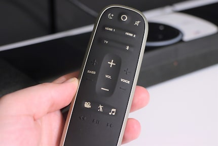 Über die Fernbedienung kannst du zudem noch die Stärke des Bass anpassen und bei «Voice Adjust» den Lautstärkepegel der Stimmen beeinflussen. Zudem kannst du zwischen drei voreingestellten Equalizern für Filme, Musik und Sport wählen. Letzterer Modus legt den Fokus auf die Stimmen und soll sich deswegen auch für Nachrichten und Talkshows eignen.