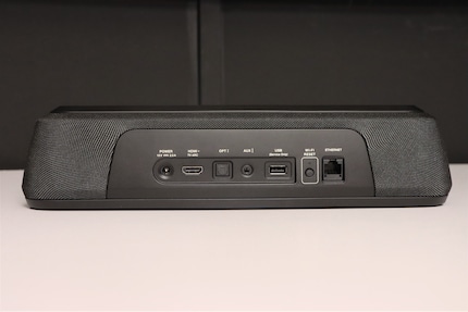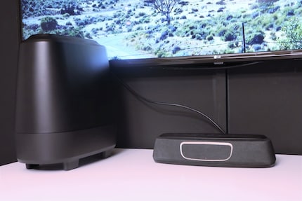 Alle anzeigenKnapp 34 Zentimeter ist die MagniFi Mini lang. Damit ist sie kürzer als jeder Fernseher. Die Command Bar kann mit ihren fast 110 Zentimetern in der Breite mit vielen Fernsehern mithalten. Der Aufbau der kleinen Soundbar gestaltet sich unkompliziert. Stromkabel in die Steckdose und HDMI-Kabel zum Fernseher, schon kommt der Sound aus der MagniFi Mini, die 5.1 Dolby Digital unterstützt und mit einer «Voice-Adjust»-Technologie die Klangqualität von Gesprächen verbessern soll.