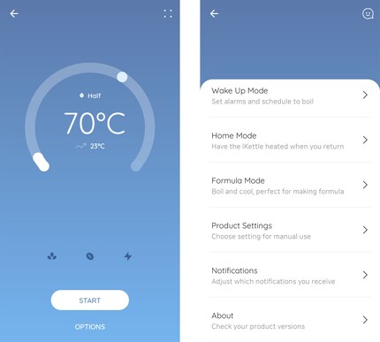 Willst du am Morgen direkt heisses Wasser, kannst du den iKettle zu einer bestimmten Zeit Wasser wärmen lassen. Oder sobald du nach Hause kommst. Die App erkennt, ob du dich in einem zuvor festgelegten Radius rund um deine Wohnung befindest und startet den Wasserkocher. Bei allen Funktionen kannst du zudem einstellen, dass der iKettle das Wasser erst einmal auf 100 Grad aufkocht und dich informiert, sobald es auf die gewünschte Temperatur abgekühlt ist. Die Funktion ist für Säuglingsnahrung geeignet, um sicherzugehen, dass Keime und Bakterien abgetötet sind.