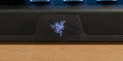 Bereits bei der Vorgängerversion war das Logo vorne in der Mitte illuminiert. Das sah dort ordentlich aus. Razer hätte dabei bleiben sollen. Der RGB-Effekt bei der V3 sieht blass aus und ist ungleichmäßig ausgeleuchtet. Das liegt an der Kunststoffeinfassung der Seite und des Unterteils. Das bringt mich zum nächsten Kritikpunkt: Die Aluminiumplatte wirkt gut verarbeitet. Der Kunststoff rundherum wirkt jedoch billig. Schade, hier wäre mehr drin gelegen. Beim Gebrauch sehe ich jedoch weder Logo noch Kunststoff, da ich stets die Handballenauflage verwende.