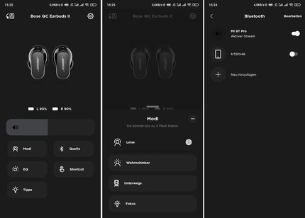 In der Bose Music-App kann die Bedienung ergänzt werden. Etwas nervig dabei: Die App hat beim Öffnen jedes Mal ein paar Sekunden, bis die Kopfhörer verbunden sind – obwohl ich zuvor schon die ganze Zeit mit den Ohrhörern Musik gehört habe. Ansonsten funktioniert die App gut und ist benutzerfreundlich aufgebaut.