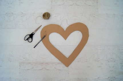 Schritt 2: Wenn du das Herz später aufhängen möchtest, kannst du mithilfe einer Schnur und einer Nadel eine Schlaufe festknoten.