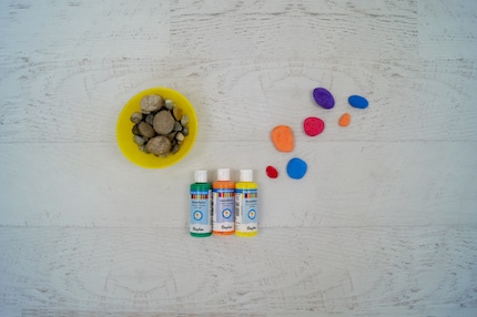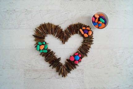 Schritt 4: Damit das Herz Farbe kriegt, kannst du kleine Steine als Dekoration bunt bemalen.