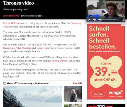 Wingo kann mich mal gern haben. Denn egal, wie gut ihr Surftarif ist, ich will eigentlich über Maisie Williams lesen und nur über Maisie Williams. Nicht irgendwas mit blinkender, animierter Werbung und so.