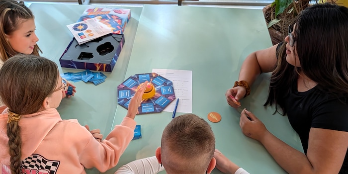 Doch Kinder wären keine Kinder, wenn sie sich nicht zwischendurch ihre eigenen Regeln ausdenken würden: Das Brettspiel «Blitzwisser» verwandelte sich spontan in «Buzzer-Beater», wer seine Karten zuerst los wird, bevor der Buzzer schreit, gewinnt.