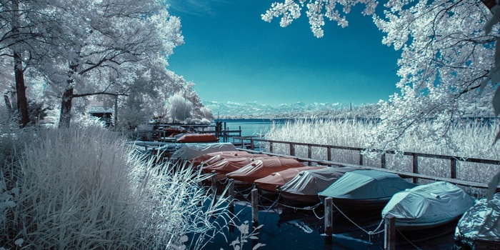 Jetzt im Frühsommer ist endlich die richtige Jahreszeit für Infrarotaufnahmen. Der Effekt zeigt sich vor allem an grünen Pflanzen. Solange die Bäume keine Blätter tragen, kannst du die IR-Kamera im Schrank lassen. Ausserdem ist es im Winter schlicht zu dunkel. Je mehr Licht, desto besser. Selbst grelles Mittagslicht ist willkommen.