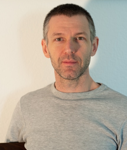 Tom weiss anscheinend ganz genau, wie ich dieses Foto gemacht habe: «Mit der Nikon-Kamera erstellt. Ohne Blitz. In deinen Augen erkenne ich verschiedene Lichtquellen. Ich tippe auf eine Wohnzimmer- oder Bürolampe von deiner rechten Seite. Man sieht einen Schatten von deiner Nase auf der linken Gesichtshälfte. Anhand dieses Schattens und der Glanzstelle im Auge denke ich, dass die Lampe leicht von unten auf dich scheint. Zudem sehe ich in deinem linken Auge ein Fenster. Wenn ich genau hinschaue, sehe ich im Fenster etwas Grünes. Ein Baum oder Busch oder so. Dieses grünliche Licht sehe ich auch auf deiner linken Gesichtshälfte im Schattenbereich.»