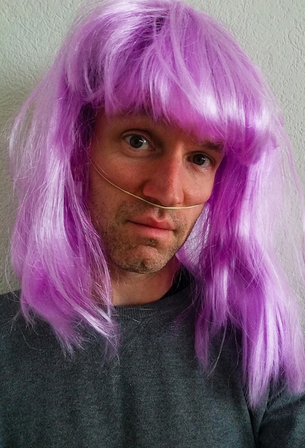 Ursprüngliches Ziel: Mein Gesicht so ähnlich verfremden, wie ich es bei Wes Naman gesehen habe. Doch schon beim ersten Gummi erinnert mich das an aufgespritzte Lippen von Möchtegern-Stars und ich entschliesse mich, meinen Plan zu ändern. Im Foto zieht mir ein weiteres, unsichtbares Gummiband das Auge hoch, damit ich etwas freundlicher dreinschaue.