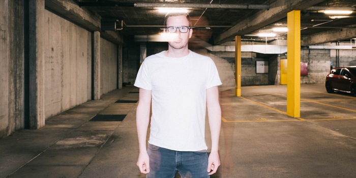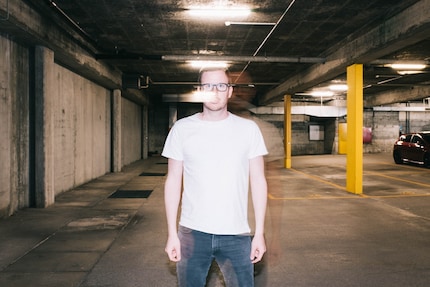 Die Auflösung: «0,8 Sekunden Belichtung mit frontalem Blitz. Unsere Tiefgarage dient als cooler urbaner Background. Nachdem die Kamera geblitzt hat, habe ich mich leicht nach links bewegt. Die dabei entstandenen Flares der Leuchten gefallen mir sehr gut.»