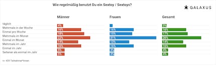 Alle anzeigenOh là là! Die Deutschen mögen’s spielerisch: Eine repräsentative Umfrage des Onlineshops Galaxus und der gemeinnützigen Organisation Jugend gegen AIDS zeigt, dass heute fast jede/r zweite Deutsche (47 Prozent) sich selbst oder seine/n Partner*in mit Sextoys befriedigt. Die Erhebung wurde durch das Marktforschungsinstituts Appinio durchgeführt. Es wurden 1.008 Personen zwischen 16 und 65 Jahren befragt.