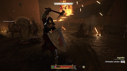 Toll inszeniert sind Belagerungen. Heinrich und Hans’ Botengang führt sie früh zur Festung Nabokov. Dort gilt es, dem Angriff durch Markwart von Aulitz und seiner Prager Söldnertruppe standzuhalten. Die mit Leitern heranstürmenden Truppen nehme ich zuerst mit Bogen, Armbrust oder der neuen Handkanone aufs Korn. Wobei letztere zwar viel Durchschlagskraft besitzt, aber viel zu lange zum Laden benötigt. Und beim Zielen bin ich nicht besser als ein betrunkener Feuerwerkszünder.