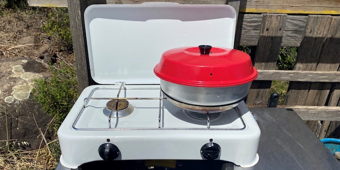 In meinem Wohnmobil habe ich zwar einen Gasherd mit zwei Flammen, aber manchmal möchte ich gerne komplett draußen kochen. Hier unterstützt mich ein kleiner Herd von Campingaz, den ich mit einer kleinen Gaskartusche betreiben kann, die auch in den kleinen Märkten der Campingplätze angeboten werden.