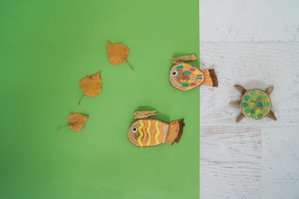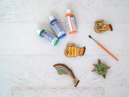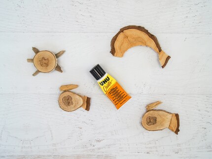 Alle anzeigenFür diese Bastelei brauchst du deine Fundstücke aus der Natur. Wenn du aber keine Möglichkeit hast, an Holz zu gelangen, kannst du Holzscheiben oder Rinden auch kaufen. Zusätzlich benötigst du einen Holzleim, ein paar Bastelfarben und Wackelaugen.
