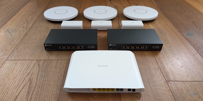Ich wohne mit meiner Familie in einem dreistöckigen Einfamilienhaus mit Keller. Es handelt sich um ein über 100‑jähriges Backsteinhaus. Beton muss das WLAN zwar nicht durchdringen, dick sind die Wände dennoch. Deshalb habe ich schon vor Jahren Netzwerkkabel in alle wichtigen Zimmer eingezogen. Dadurch muss ich keine WLAN-Repeater verwenden, die per Funk mit dem Router kommunizieren, sondern nutze Access Points, die per Netzwerkkabel verbunden sind.