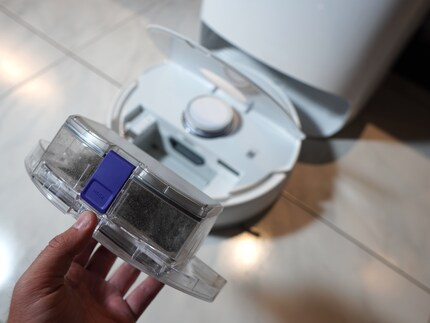 Der grosse Nachteil des Systems: Die Basisstation kann den Staub nicht absaugen. Diesen musst du manuell aus dem Schmutzbehälter entfernen. Das ist etwas mühsam, weil du den Roboter von Hand aus der Garage ziehen musst. Dann den Deckel öffnen und den Behälter in den Kübel leeren – danach den Freo wieder in die Station schieben. Ein Knopf auf der Station, der den Roboter wenigstens automatisch rein- und rausfahren lässt, wäre da praktisch gewesen.