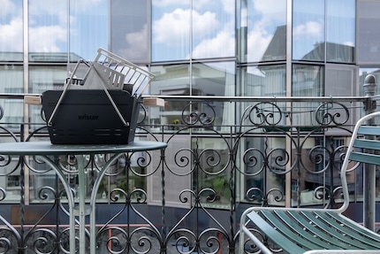 Alle anzeigenEin Leben in der Stadt. Unendliche Gastronomieangebote auf kleinem Raum. Indisch, Italienisch, Indonesisch. Jeden Abend kann ich kulinarisch um die halbe Welt reisen. Wenn aber die Grillzeit kommt, wird’s schwierig. Die Balkone sind oft zu klein für ein fixes Gerät, geschweige denn Besuch. Ist der Balkon gross genug, ist Grillieren vom Vermieter oftmals verboten. Wegen der Nachbarn. Oder der Fassade. Oder beidem. Draussen in einem Park finden Halloumi und Wurst dann auf billigen Einweggrills Platz. Übel für die Umwelt und langes Grillieren. Da billigste Holzkohle in der Alu-Verpackung steckt, wechselt der Aggregatzustand binnen Sekunden von fest zu Asche. Um aber einen Mehrweggrill anzuschleppen, sind dann doch wieder alle zu faul, weil er schwer und unhandlich ist. Die Münchnerin Carolin Kunert hat sich dem Problem des urbanen Grillierens angenommen.