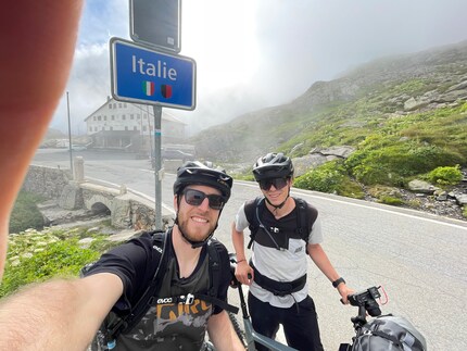 Der beste Tag. Das findet jedenfalls Manu, der sich trotz zwei Bergpreisen und sehr später Ankunft in Aosta auf der 4. Etappe so wohlgefühlt hat, wie noch nie auf dieser Reise. Das habe vermutlich an den Temperaturen gelegen, meint er. Denn: statt sengender Sonne und glühender Hitze fuhren Manu und Marius bei kühlen Temperaturen und nebligem Wetter.