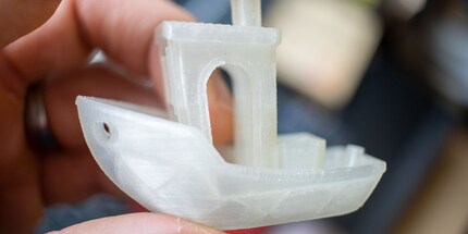 Mit denselben Einstellungen versuche ich einen Benchy. Nach ungefähr 50 Prozent Fortschritt verstopft die Düse erneut. Es ist zum Mäusemelken. Verzweifelt versuche ich es mit einem letzten Ratschlag aus dem Proto-pasta-Forum: Ich öle das Filament. Yes, es funktioniert. Tatsächlich kann ich einen Benchy drucken, ohne dass die Düse verstopft . Leider hat er hässliche Fäden. Ich reduziere die Temperatur auf 210° Celsius und verwende nur zu Beginn, bei 30 und 70 Prozent Druckfortschritt etwas Öl. Erneut glückt mir der Benchy. Leider hat es noch immer Fäden. Gehe ich noch weiter runter mit der Temperatur, verstopft die Düse erneut.