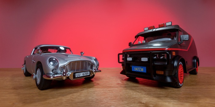 Alle anzeigenLetztes Jahr erschien von Playmobil bereits der DeLorean aus «Zurück in die Zukunft» und die Klassiker von Volkswagen, der Bulli und der Käfer. Dieses Jahr kommen nach der U.S.S. Enterprise zwei weitere Fahrzeuge für die AFOPs auf den Markt: der ikonische Aston Martin DB5 von «James Bond» und der Van aus der Kultserie «The A-Team».