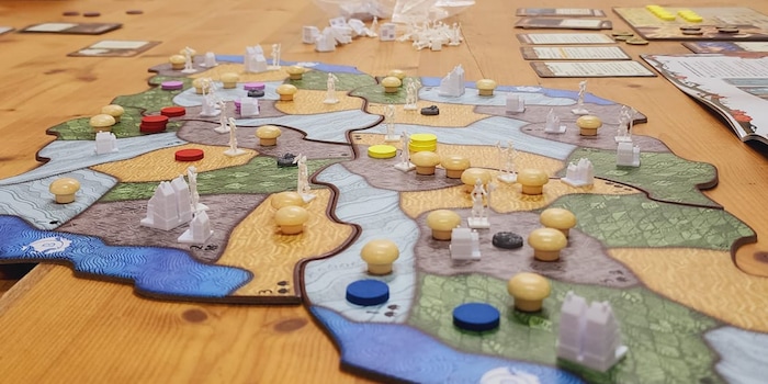 Die Karten und Komponenten sind von hoher Qualität und clever gestaltet, obwohl die Figuren etwas zerbrechlich wirken. Einigen aus der Gruppe gefielen die schlichten Landschaften weniger. Die einfache Gestaltung verbessert allerdings die Lesbarkeit des Spielfelds erheblich.