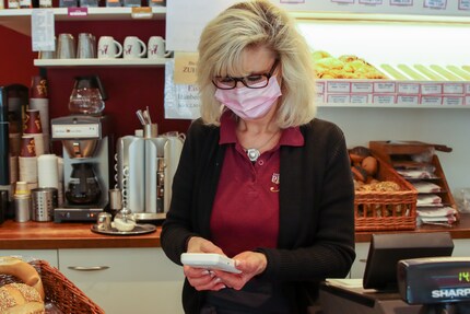 Während Olaf Peukert in der Backstube Teig knetet und Torten verziert, kümmert sich Carmen Peukert um den Verkauf von Brot, Brötchen, Kuchen und anderem Gebäck. Logisch, dass sich dann auch das Kartenlesegerät in ihren Händen befindet. Bei der Einrichtung über die App lässt sie sich von ihrer Tochter helfen und stellt danach fest, dass das gar nicht nötig gewesen wäre: «Das hat nur fünf Minuten gedauert.» E-Mail-Adresse, Geschäftsadresse und die Kontoverbindung eingeben, Verbindung zum Kartenlesegerät herstellen, fertig.