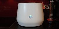 Ist die Kartusche eingesetzt und der Deckel wieder drauf, drücke ich für etwa zwei Sekunden den einzigen Knopf am Gerät. Drei aufsteigende Töne bestätigen, dass ich den E55 erfolgreich eingeschaltet habe. Vier ringförmig um den Einschaltknopf platzierte LED blinken jetzt. Das bedeutet, dass sich das Gerät aufheizt. Ist es nach knapp einer Viertelstunde auf Betriebstemperatur, leuchten die LEDs konstant. Dann kann ich bei genauem Hinsehen auch die kleine Dampfwolke sehen, die oben aus dem Gerät kommt, quasi der Geist aus der Flasche, der die Mücken bekämpft.