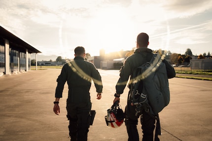 Auch Claudius hat das Sphair-Programm durchlaufen und ist hauptberuflicher F/A-18-Kampfjetpilot. Das Fliegen mit der Patrouille Suisse nimmt nur etwa 20 bis 30 Prozent seines Arbeitsalltages ein. Normalerweise ist Claudius in Payerne oder in Meiringen stationiert. Als Berufspilot trainiert er dort für diverse Szenarien und hat Luftpolizeidienst – übernimmt also die Sicherung und Überwachung des Schweizer Luftraums. Bevor ich etwas sagen kann, rückt er nach: «Nicht nur zu Bürozeiten. Wir schlafen auch dort und sind während 24 Stunden jeden Tag in der Woche mit zwei Flugzeugen innerhalb von 15 Minuten bereit».
