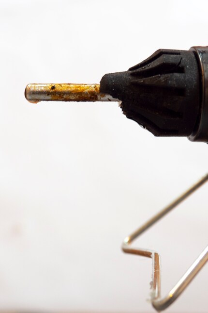 Bosch PKP 18 E: Diesen Punkt kann ich nicht ganz unvoreingenommen bewerten. Die Landdüse der Bosch ist fast vollständig freigelegt, bis auf den kleinen Teil, der als Hitzeschutz dienen soll. Nachdem ich die Heissleimpistole aber intensiv benutze, fällt ein grosser Teil vom Gummi ab und die Fläche vom Metall wird noch grösser. Zum Basteln mit Kindern ist sie deswegen eher ungeeignet – die Verbrennungsgefahr ist zu gross. Davon rät auch der Hersteller ab. Für «Kinder unter acht Jahren und Personen mit eingeschränkten physischen, sensorischen oder geistigen Fähigkeiten» sei diese Klebepistole nicht vorgesehen, heisst es in der Gebrauchsanweisung.