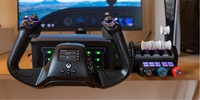Der Flightstick lässt sich links und rechts rotieren, womit sich das Seitenruder bedienen lässt. In Kombination mit dem Trimmrad am Flightstick selbst und dem Schubregler rechts, den ich für die Landeklappen benutze, habe ich auf kleinstem Raum alle wichtigen Bedienelemente für den kurzen Flug mit einmotorigen Maschinen. Spielereien wie eine eingebaute Stoppuhr für den Sichtflug runden das Paket ab. Bei anderen Controllern hat mir stets irgendetwas gefehlt. Hier bin ich wunschlos glücklich. Aber das hat seinen Preis: Die Schubregler sind so kurz, dass perfekte Justieren nicht möglich ist. Die Buttons müsste ich beschriften, da ich ihre Funktionen gerne vergesse. Für längere Unterfangen ist mein Honeycomb Setup daher noch immer Trumpf.