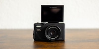 Zum Lieferumfang gehören neben der üblichen Handschlaufe und dem Kabel (USB-C auf USB-A) auch ein Schlüsselanhänger und ein Tragegurt für um den Hals. Was bei einer so winzigen Kamera lustig aussieht. Ebenfalls cool: ein USB-C-Adapter. Da die Kamera so klein und leicht ist, lässt sie sich tatsächlich frei schwebend an einen Ladeadapter anstecken.