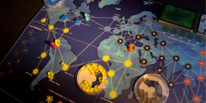 Bei «Pandemic» wird es medizinisch und katastrophal: Auf der Welt sind vier verschiedene Seuchen ausgebrochen. Die Spieler kämpfen als Experten-Team, von denen jeder über spezielle Fähigkeiten verfügt, gegen die Epidemien. Es gilt als Wissenschaftlerin oder Forscher zeitgleich Impfstoffe zu entwickeln und als Sanitäter oder Quarantäne-Spezialistin die Seuchenherde im Zaum zu halten. Die Ressourcen und die Reisezeit sind natürlich begrenzt, so dass immer wieder Entscheidungen gefragt sind, was wichtiger zur Bekämpfung ist: Forschung oder Akut-Maßnahmen. Hier können Logistiker, Krisenmanager und Betriebsexperten helfen. Allerdings können nicht mehr als vier Personen zusammen die Welt retten. Wählt eure Rollen also mit Bedacht aus.