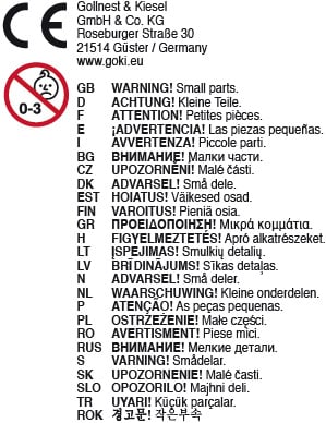 Warnhinweis Spielzeug | Achtung: Nicht für Kinder unter 3 Jahren geeignet. Erstickungsgefahr aufgrund verschluckbarer Kleinteile. |