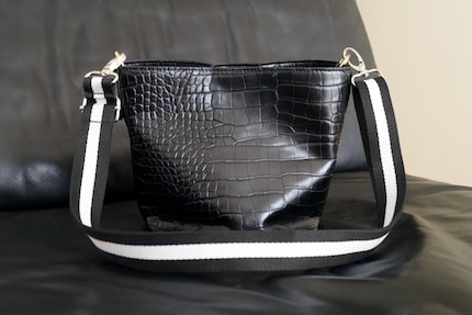 This bag and I have been going through life together since 2017. And I’m not the only one whose appearance has changed during our seven-year relationship. Life hasn’t left my little, black bucket bag unscathed. Here and there, the crocodile-style faux leather has become quite scuffed – especially on the handle. But is this enough to ditch it or even chuck it out? Absolutely not!
