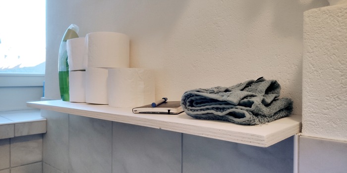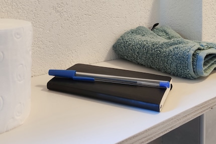 Show allI've been looking for a small shelf for my toilet for a long time, where I can put toilet paper, cleaning products and maybe a bit of decoration or a notebook with a pen. I often develop my thoughts on the loo or a suitable formulation for a text falls like scales from my eyes. I want to be prepared for this moment. There is space for the notebook and everything else, as the loo has its own room in my flat. No shower, no washbasin, nothing, just a small corridor with a toilet at the end. The crux of the matter: the shelf has to be incredibly narrow so that the door still opens and closes. 12 centimetres deep, but still at least 150 centimetres long doesn't seem to be a common measurement.