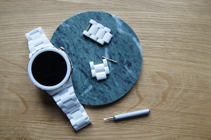 Whenever I hold the multi-link strap in my hand, the individual elements go clacking against each other. I’m not sure what to make of the material yet. Quite deliberately, the watch isn’t supposed to look like a smartwatch. That being said, the white ceramic material doesn’t really remind me of a traditional watch either.
