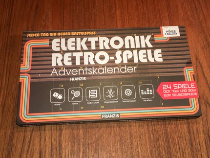 Behind the door: "Ha! That's brilliant! I'm going crazy: a plug-in circuit board, a push-button switch and a battery compartment! And lots of wire too. How cool is that?" The creative minds at the manufacturing company Franzis must have imagined the morning jubilation in the teenager's room that the retro electronics games Advent calendar triggers. Hidden behind the little doors are small components with which you can add to your existing kit. An LED light. A resistor. And another LED light. And another resistor. And a sound transducer. If you insert the components correctly into the plug-in board, you can then play "whack-a-mole", "roulette" or "17 and 4", in the simplest form of course. Ouch! Fun when building: Not much. Fun while playing: None. Who is this rather simple electric construction set intended for? According to the manufacturer's recommendation, it is aimed at buyers aged 14 and over. But the handful of young people who are really interested in electric circuits will have moved on long ago. You won't catch them with "Build your own Senso". And all the other boys and girls would rather paddle around on a console than find out how the thing works anyway.