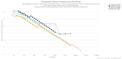 Identifying dynamic range precisely is hard without a lab. I ranted about it recently. The DxOMark test lab is obviously not in a position to test Fujifilm sensors – probably because the sensors have a different RGB pattern to the conventional Bayer pattern. On PhotonsToPhotos.Net, the Fujifilm GFX 100 does very well in terms of dynamic range – better than the Fujifilm medium format cameras with 50 megapixels. It should be exactly the same on the 100S because it has the same sensor.