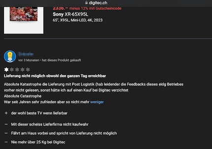 Secondly: Don’t get me wrong, it’s annoying when there’s a hiccup with your delivery. But it’s not relevant to other people. Please keep stuff like this to yourself. Or if you absolutely have to mention it, briefly do so alongside the negative points. But don’t judge the product based on its journey to your door. These two things aren’t related. It’s not like you leave a negative Google review for a restaurant because you got stuck in traffic on the way there, is it?
