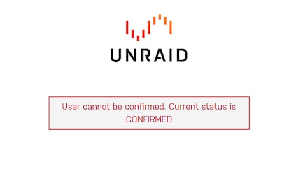 «User cannot be confirmed. Current status is CONFIRMED.» OK, so I created a new user account. But it can’t even be confirmed yet, I’m still suffering through the process. At the same time, I can’t log in to my Unraid user account I just created. After a few failed attempts, the following works. I click on Forgot your password? in Unraid.net and set a new one. Presto, registration works. No idea why registration was such a pain. Pretty annoying if you ask me.