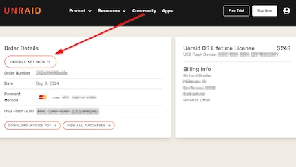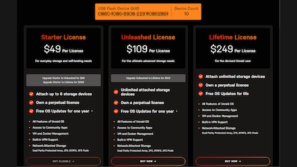 Lime Technology, the company behind Unraid, has linked the licence for its operating system to USB sticks, i.e. to a Globally Unique Identifier (GUID). That’s the unique serial number of every USB stick.
