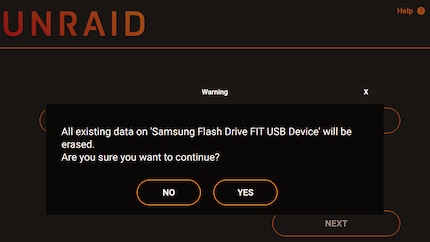 After entering all the settings, I click on Continue. At this point, I’m informed that all data on the USB stick will be deleted. I confirm this by clicking Yes. Make sure you don’t use the USB stick that contains photos from your last holiday!