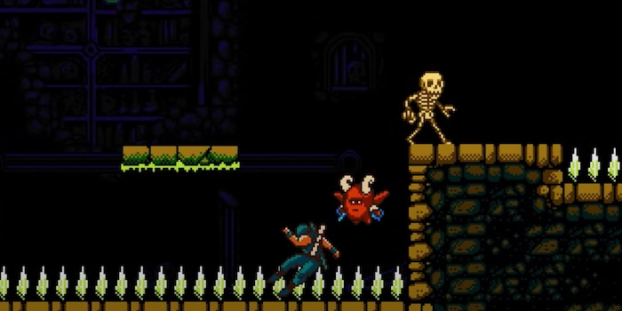 What does this long digression have to do with Metroidvania games? In The Messenger, which I've just finished, I have an infinite number of lives. Every time I die, the greedy demon Kazimodo revives me. In return, he eats all the temporal diamonds (the game's currency) that I have to collect. And he makes fun of me every time. For example, he tells me: "I'm the one you'd never have met if you'd had any talent". Right up until the credits rolled, the little mocking demon had given me 444 criticisms (I'm not very good at this game). Today, I'm proud to be able to take these criticisms in good humour.