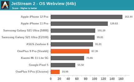 Show allAndrei Frumusanu, editor for the tech portal AnandTech discovered that the OnePlus 9 and the 9 Pro have a blacklist. Apps such as Chrome will not be allowed to use the phone’s fastest processor cores. Benchmark apps – apps that exhaust the phone’s performance and measure it in numbers – on the other hand get full access to all system resources.