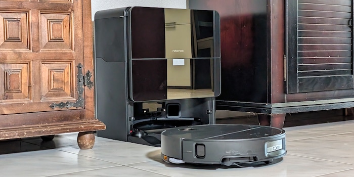 Speaking of mops, Roborock relies on a large, textile-covered mop that covers the entire width of the robot. It’s moistened with water, pressed against the floor, and vibrates to clean. This worked well on dried-in stains, leaving just a single spot behind. Incidentally, the Saros 10 can drop the mop into the base station when not in use. This wasn’t possible with previous models.