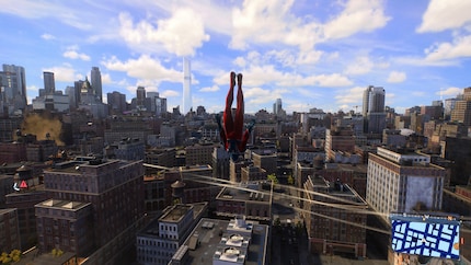 «New York, New York, big city of dreams,» as Grandmaster Flash and the Furious Five said. The virtual version of this iconic metropolis is still dreamlike in Spider-Man 2. Even in Part 1, it plays the most vital role in the game, along with the story and combat system. This is even more true for Part 2. Firstly, because new boroughs like Brooklyn and Queens have been added, nearly doubling the size of the game. Secondly, New York feels more alive than ever before. Residents scurry around, cabs honk in heavy traffic and pigeons clamour for Spider-Man’s vantage points. Sure, when I’m on foot and looking closely at what’s happening, the illusion fizzles out a bit. The game sometimes struggles with details on passers-by or buildings. Still, at least people respond to me and want to take pictures with me. But most of the time, I swing through the big city so quickly that I hardly notice any missing details anyway.